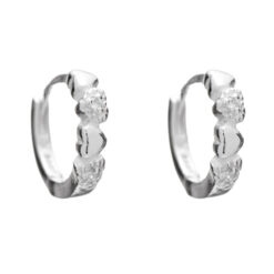 Brinco De Prata 925 Argolinha Corações Com Zircônias Cristal 1,1 cm