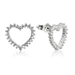 Brinco de prata 925 coração cravejado com zircônias cristal