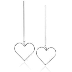 Brinco De Prata 925 Fio Coração Vazado 5,8 cm