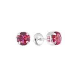 Brinco de prata 925 tarraxa baby zircônia redonda turmalina rosa 5mm