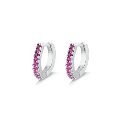 Brinco de prata 925 argola pequena cravejada rubi 1,2 cm