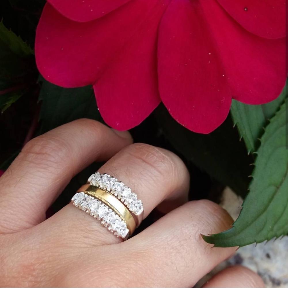 Possui zircônias brancas na metade superior do anel. Além disso, é uma joia especialmente sofisticada.