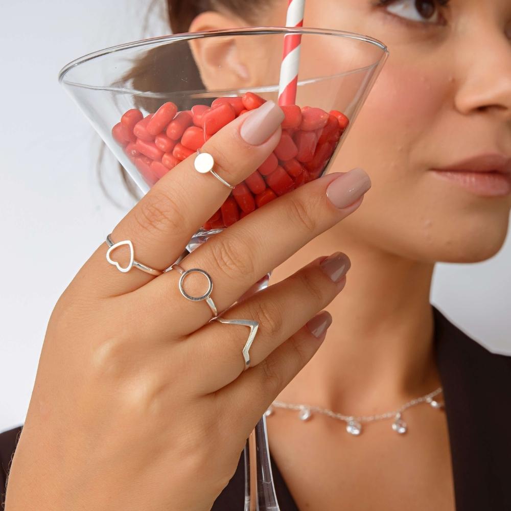 Inegavelmente, o anel coração vazado em prata é perfeito para criar mixes incríveis. Além disso, é uma joia delicada e minimalista.