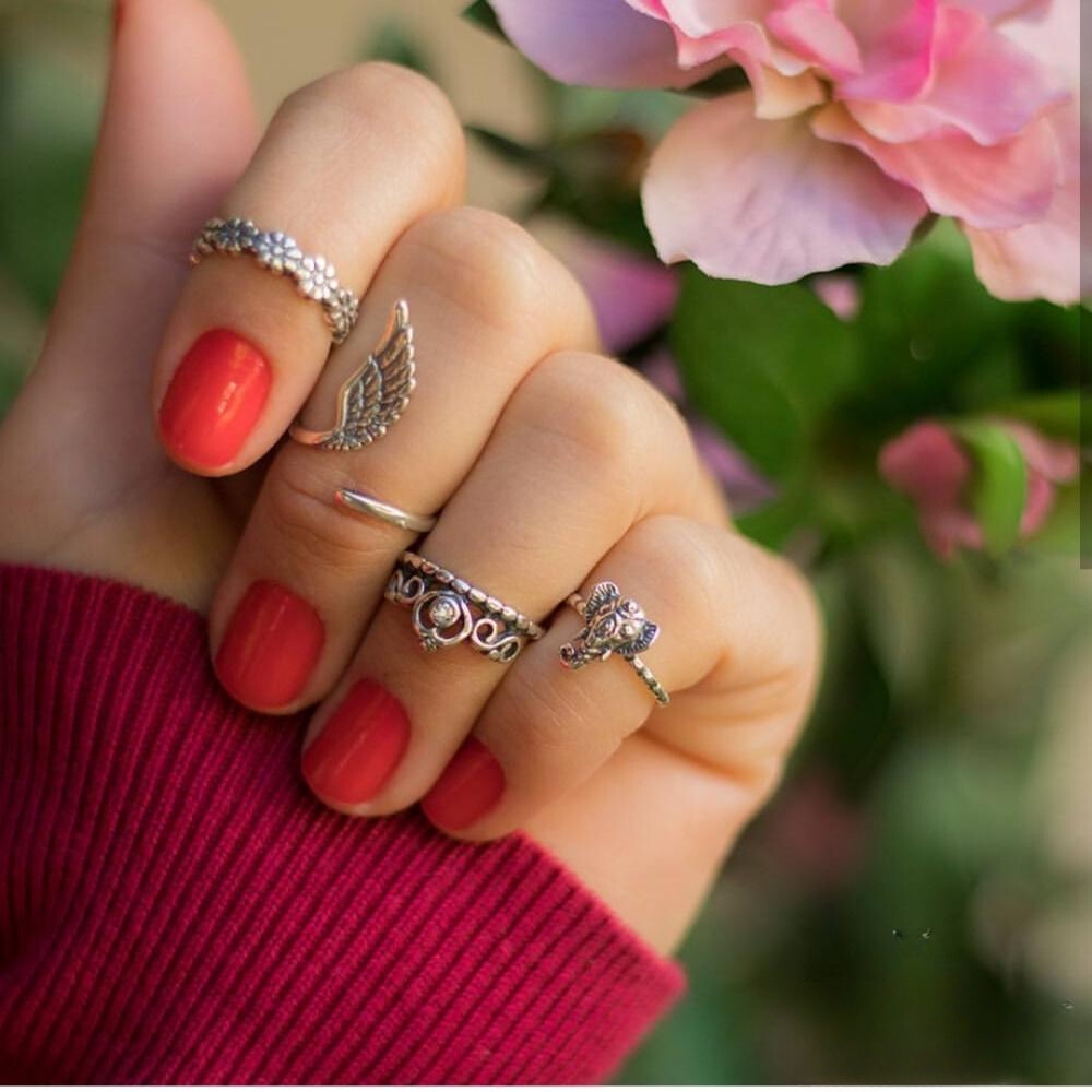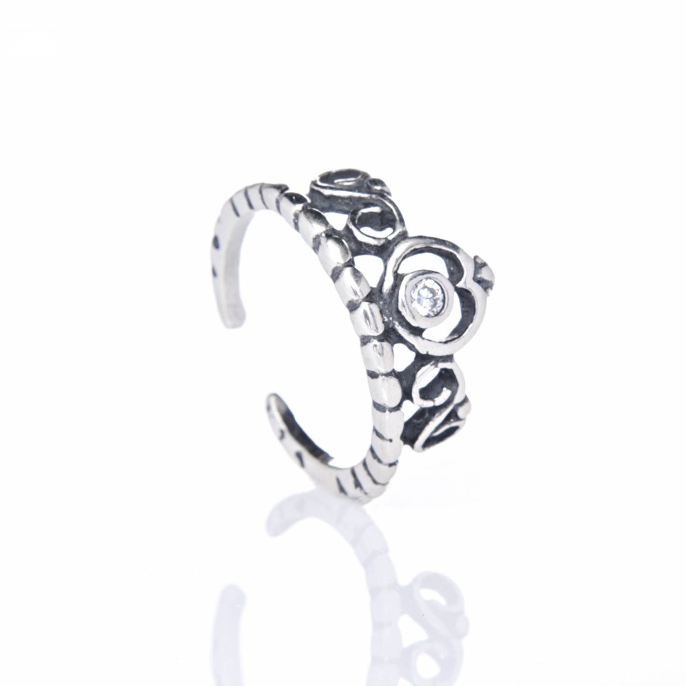 Anel De Prata 925 Ponta De Dedo Coroa Envelhecida