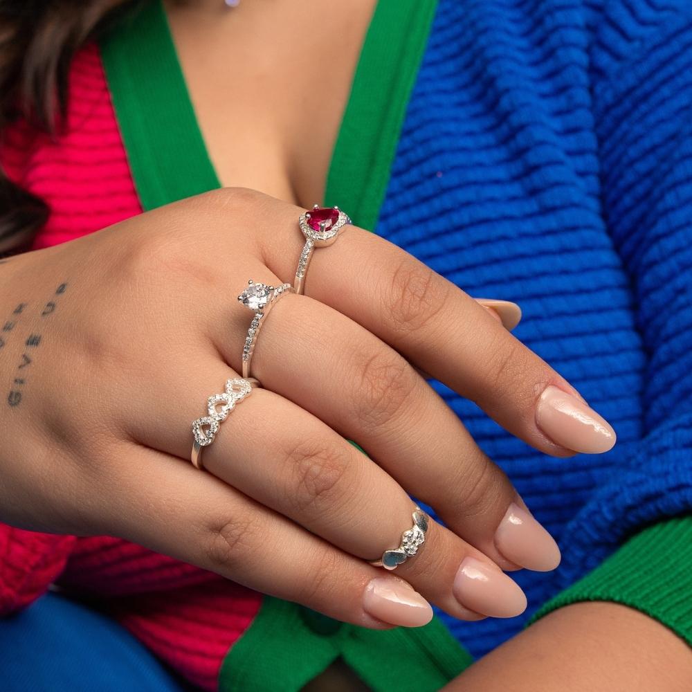 Portanto, o anel de prata três corações cravejados é perfeito para criar mixes com outros anéis.
