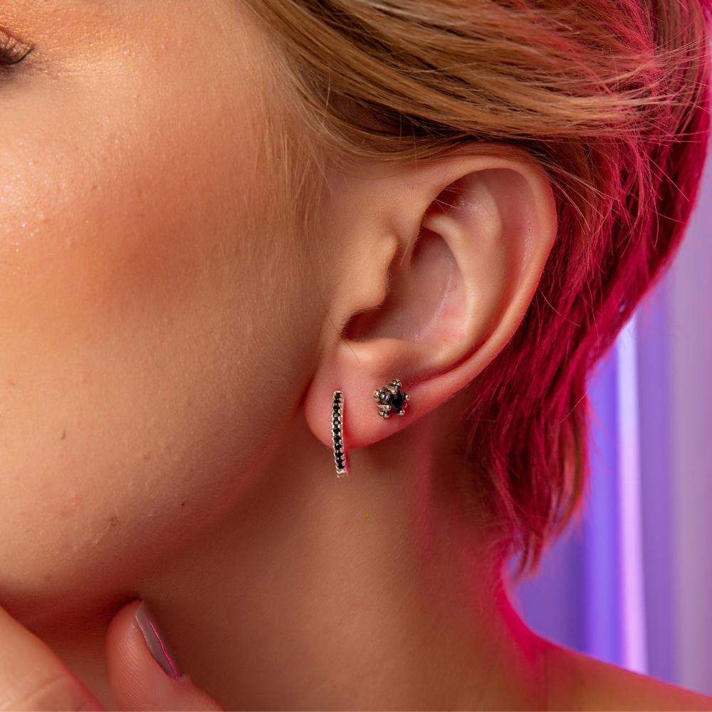 A argola Prata cravejada zircônia preta é a joia perfeita para dar um toque de glamour a qualquer look.