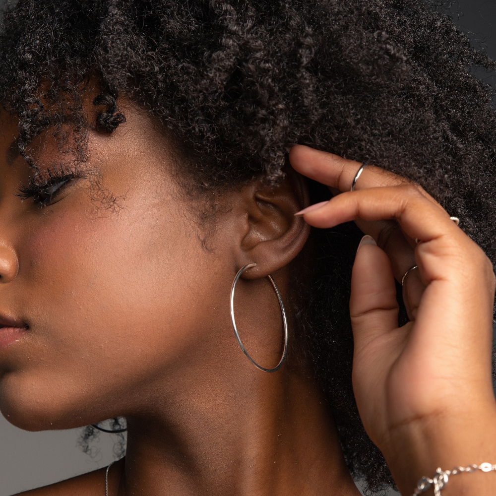 É uma joia leve e de fácil combinação. Use o brinco argola média em Prata com brincos de segundo furo e arrase!
