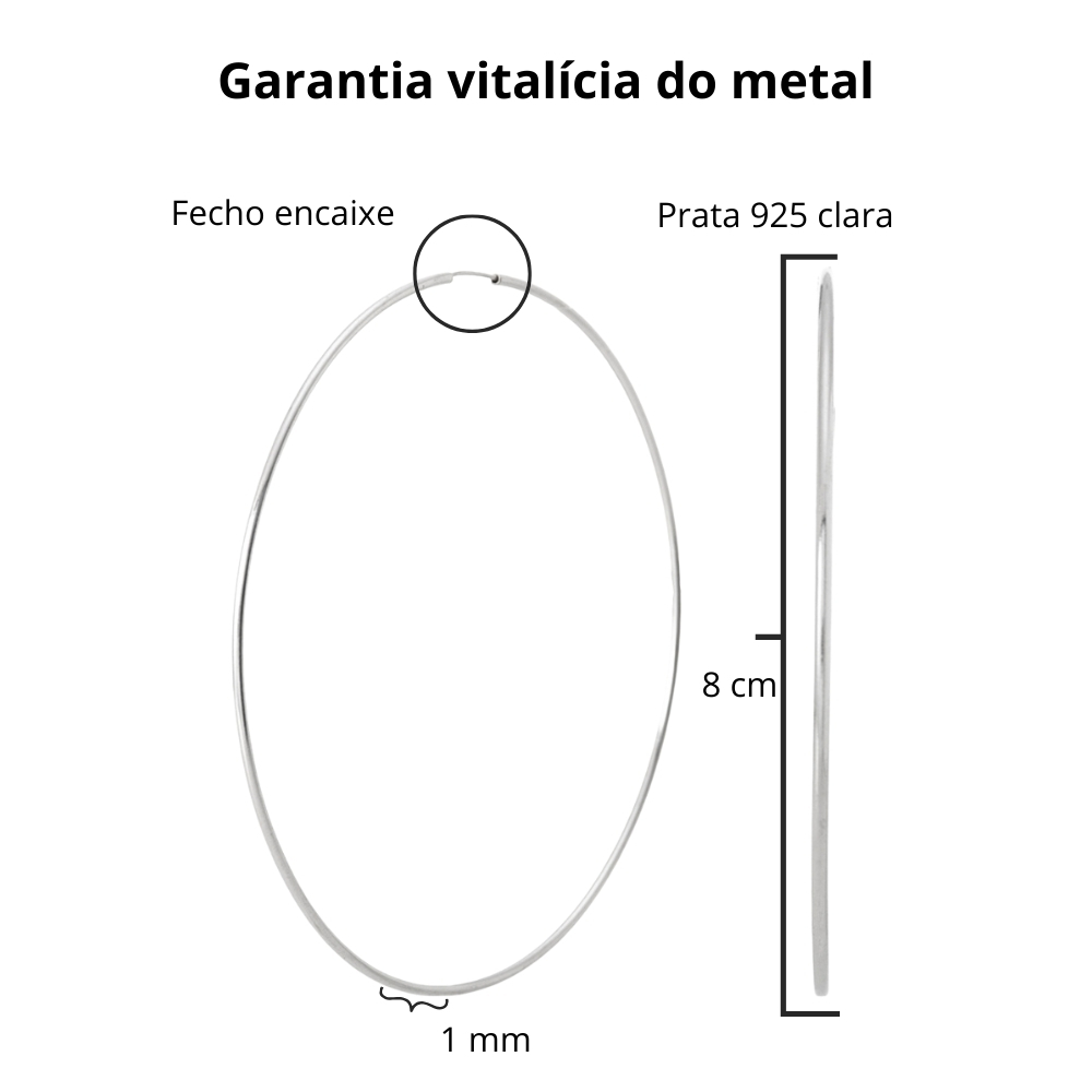Brinco de prata 925 argola fio redondo liso 8 cm