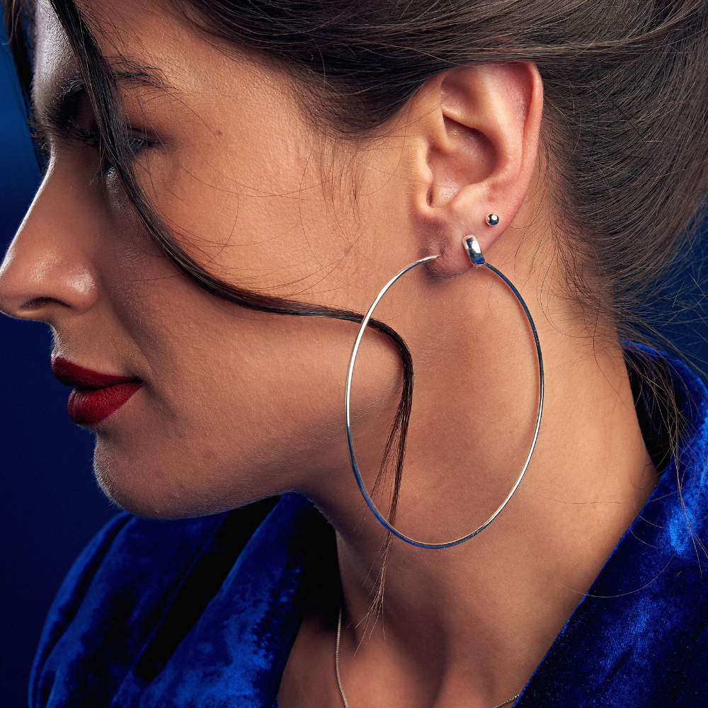 É uma joia leve e de fácil combinação. Use o argola de prata GG com brincos de segundo furo e arrase!