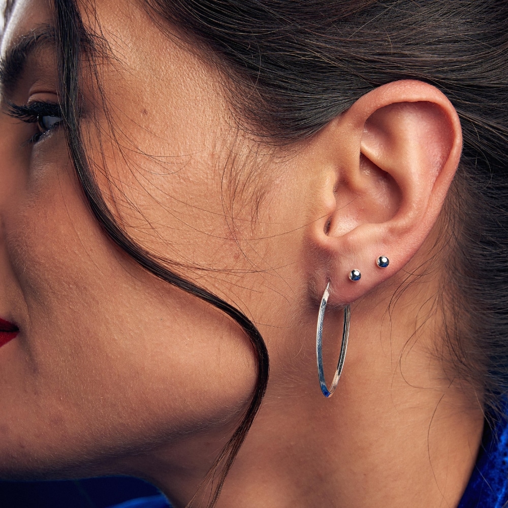 É uma joia leve e de fácil combinação. Use o argola de prata oval pontiaguda com brincos de segundo furo e arrase!