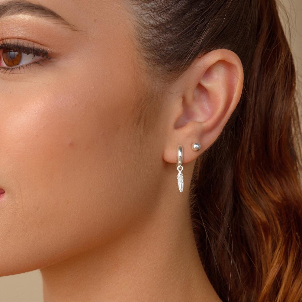 O brinco de argola com pingente peninha vai completar seus looks descomplicados com muito estilo.