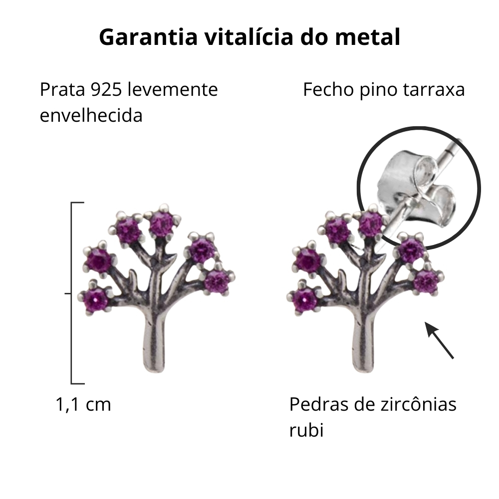 Com toda certeza, o brinco árvore da vida rubi Prata vai deixar qualquer look mais alegre e muito meigo.