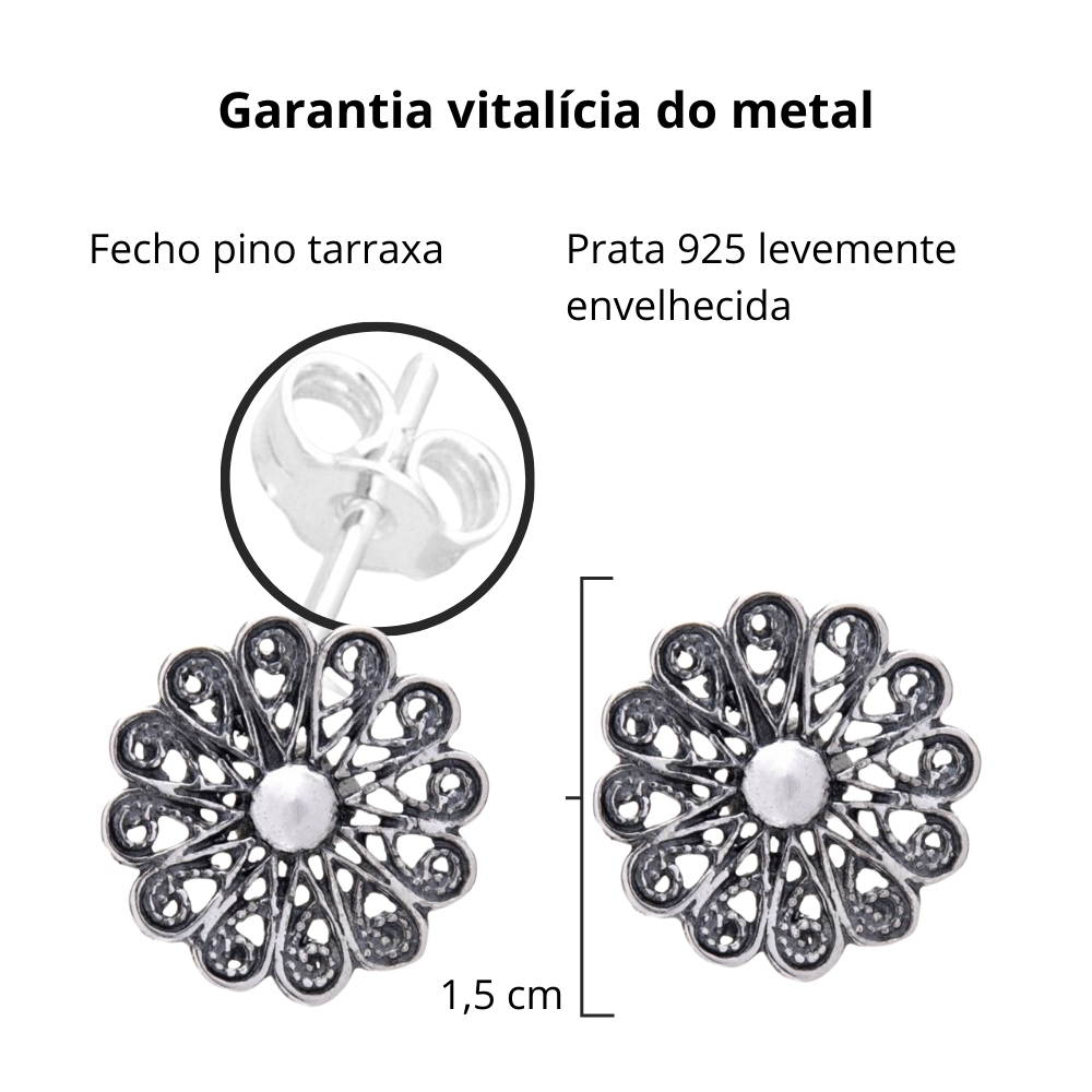 O brinco de flor em prata envelhecida, certamente é um acessório poderoso para trazer charme em qualquer look!