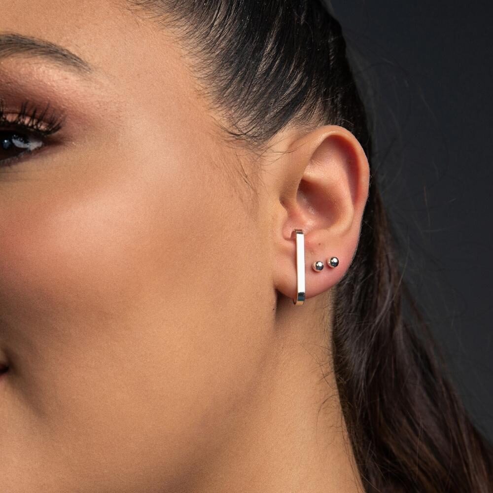 O brinco bolinha Prata 925 tem o tamanho ideal para ser usado no segundo e terceiro furo, dessa forma, pode abusar das combinações.