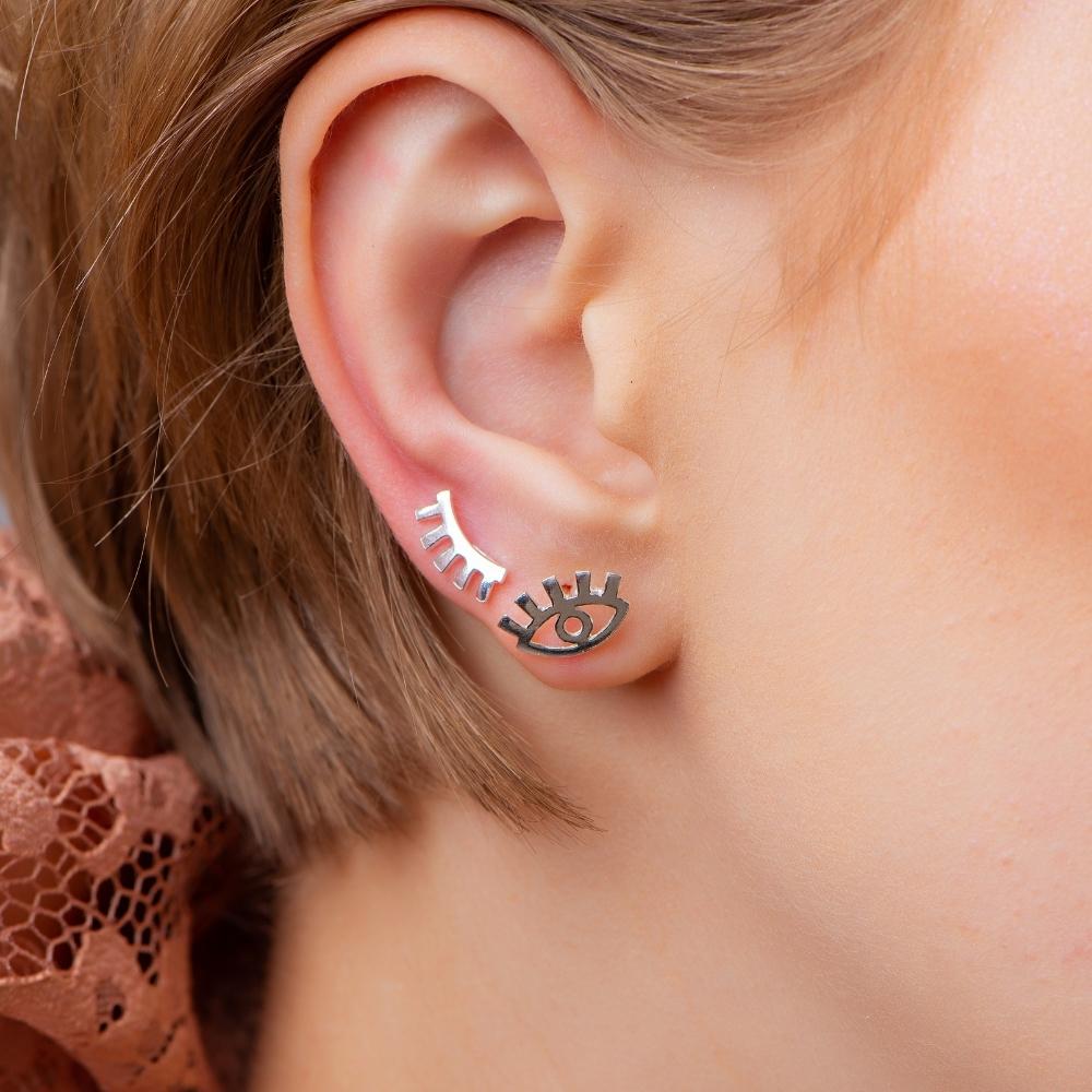 O brinco de prata cílios é uma joia delicada com design super singular. Certamente se encaixa bem em qualquer visual.