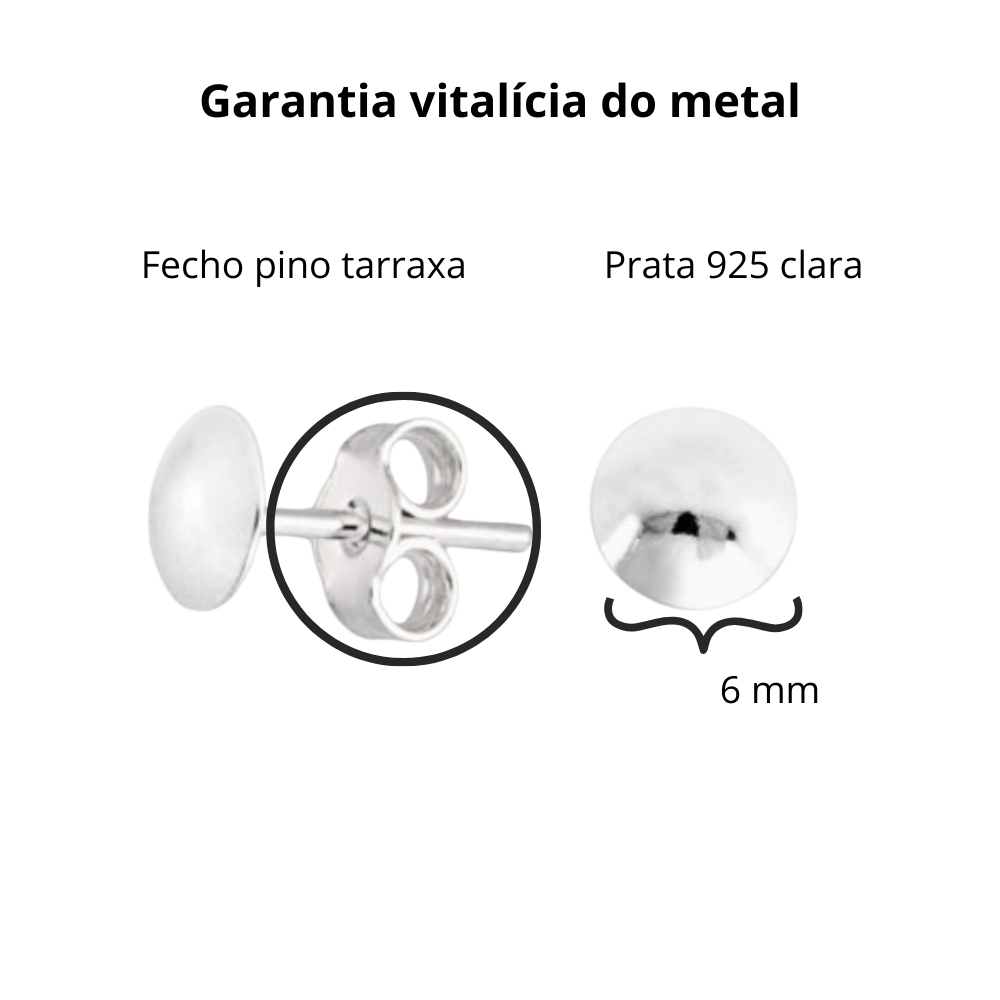 Nossos brincos são produzidos com a Prata 925, que é uma liga composta por 92,5% de prata pura e 7,5% de outros metais, também conhecida como Prata Legítima, essa composição torna a joia mais resistente ao desgaste do dia a dia.