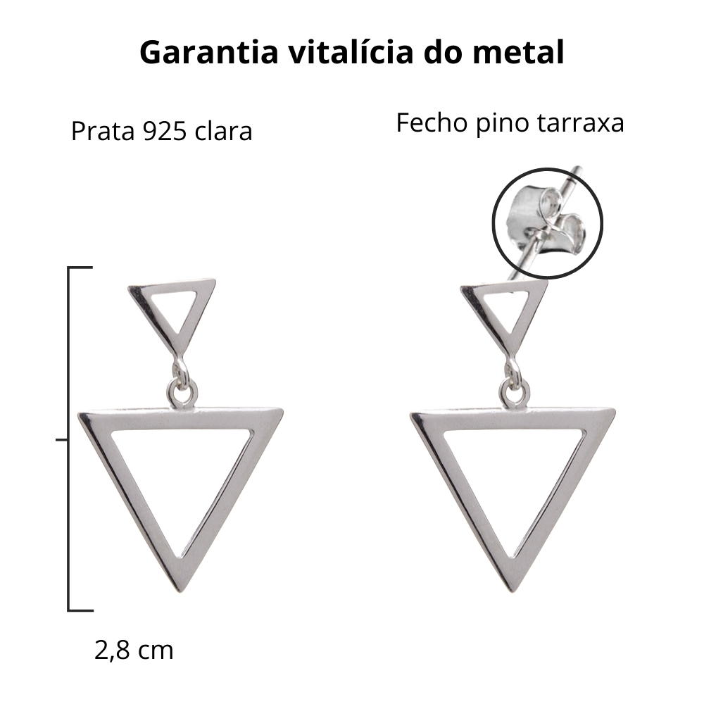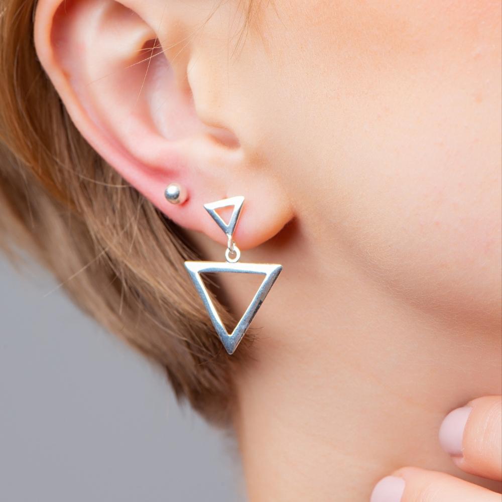 O brinco de prata dois triângulos é uma joia estilosa e que nunca sai de moda.