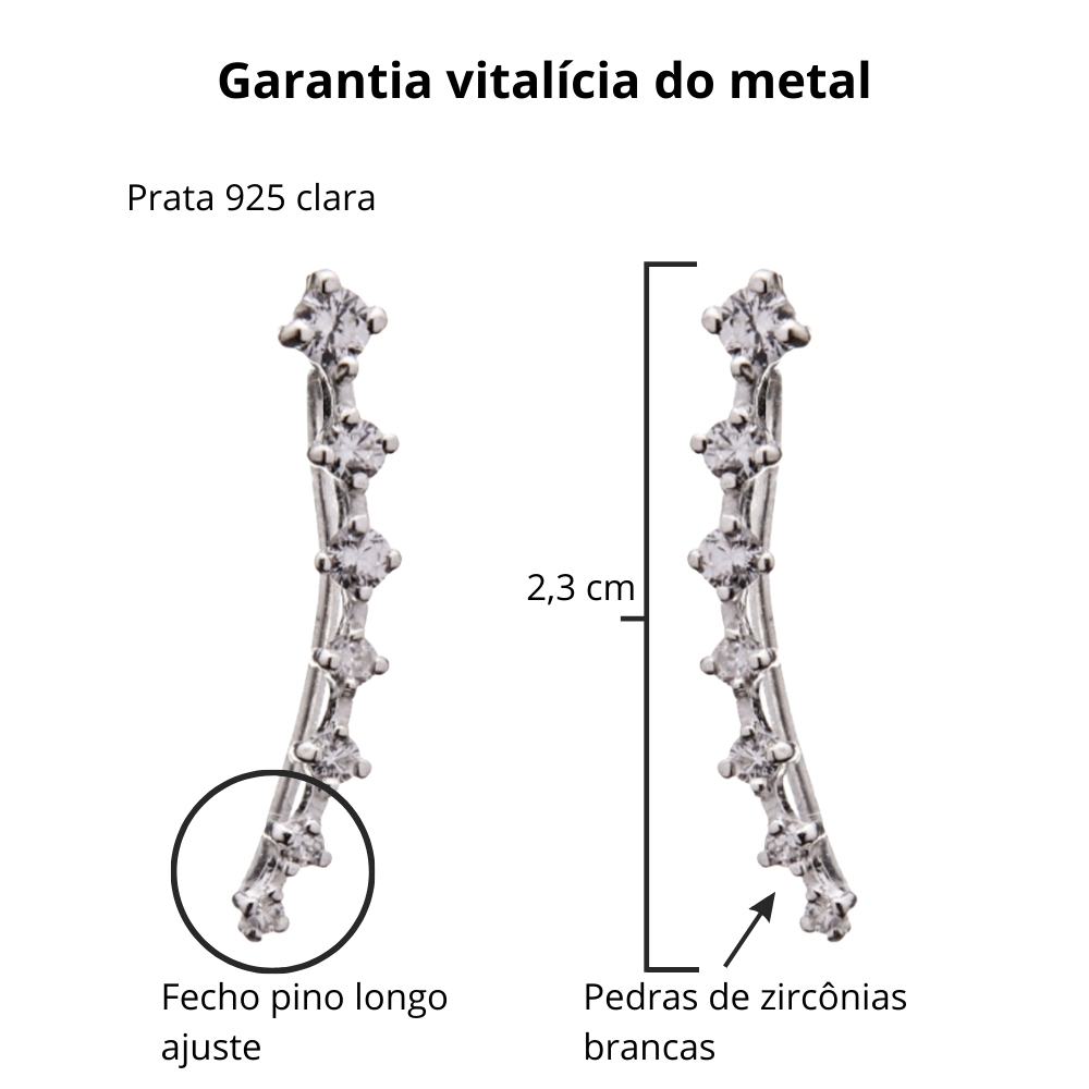 O brinco de prata ear cuff com zircônias brancas, inegavelmente é uma joia delicada e muito autêntica para conquistar um visual moderno e único.