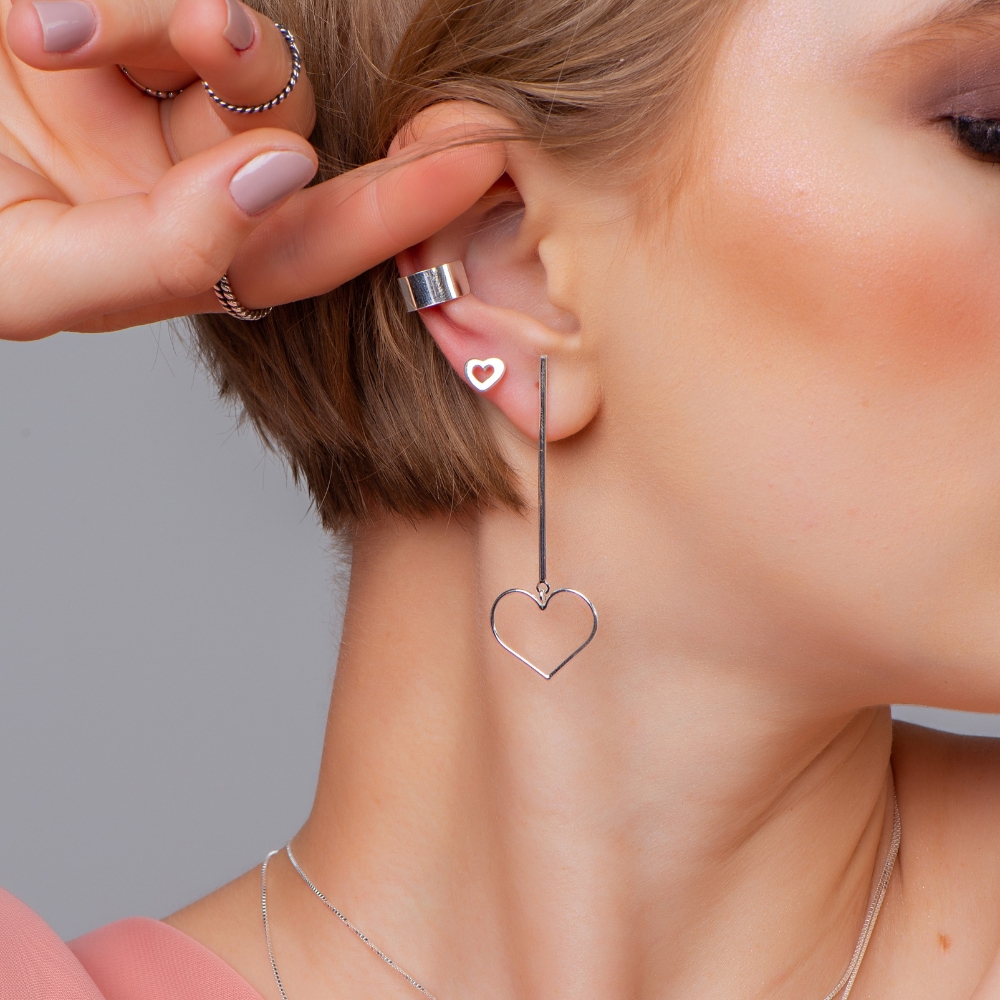 Brinco De Prata 925 Fio Coração Vazado 5,8 cm