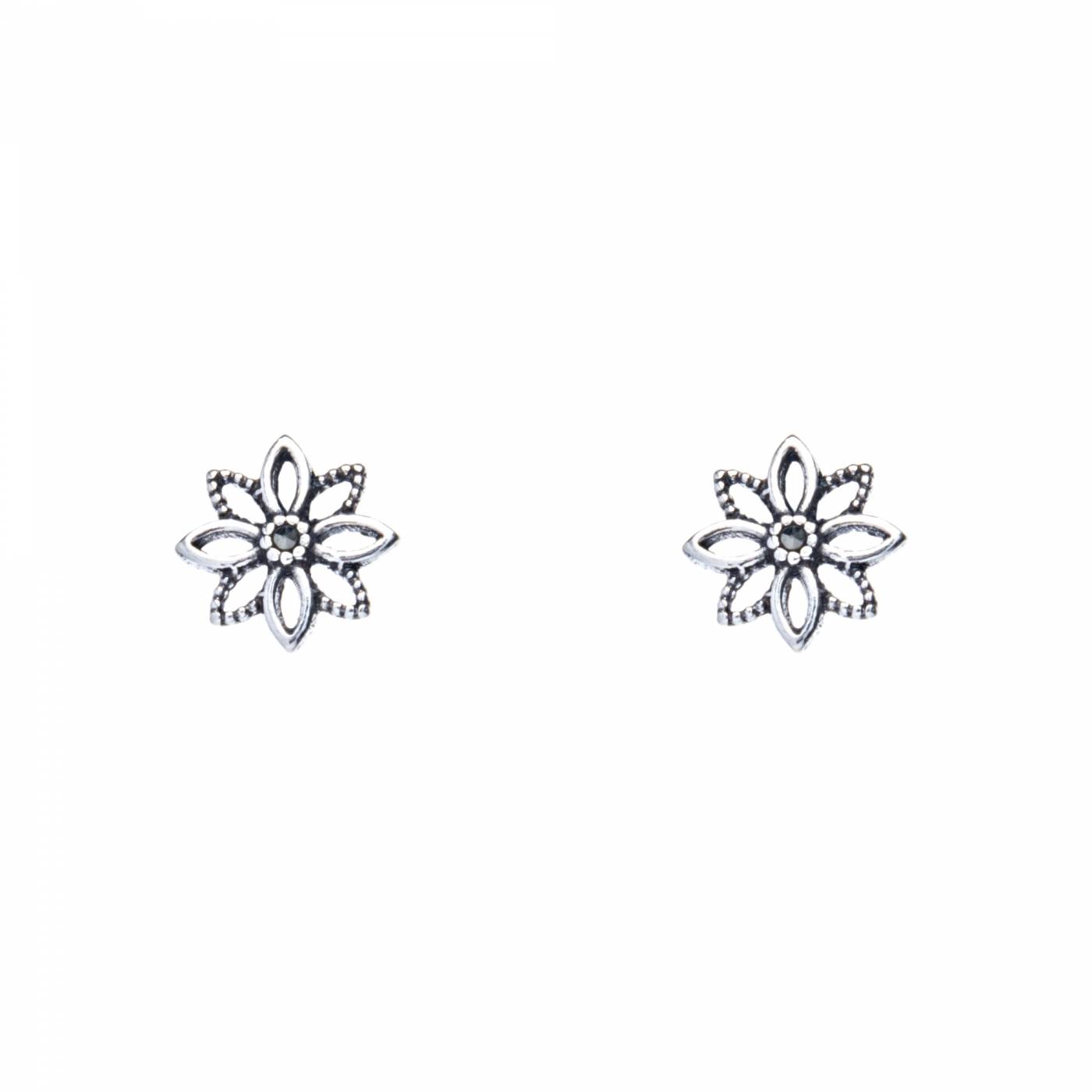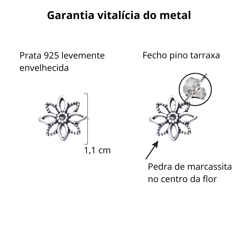 Brinco De Prata 925 Flor Vazada Envelhecida Com Marcassitas 1,1 Cm