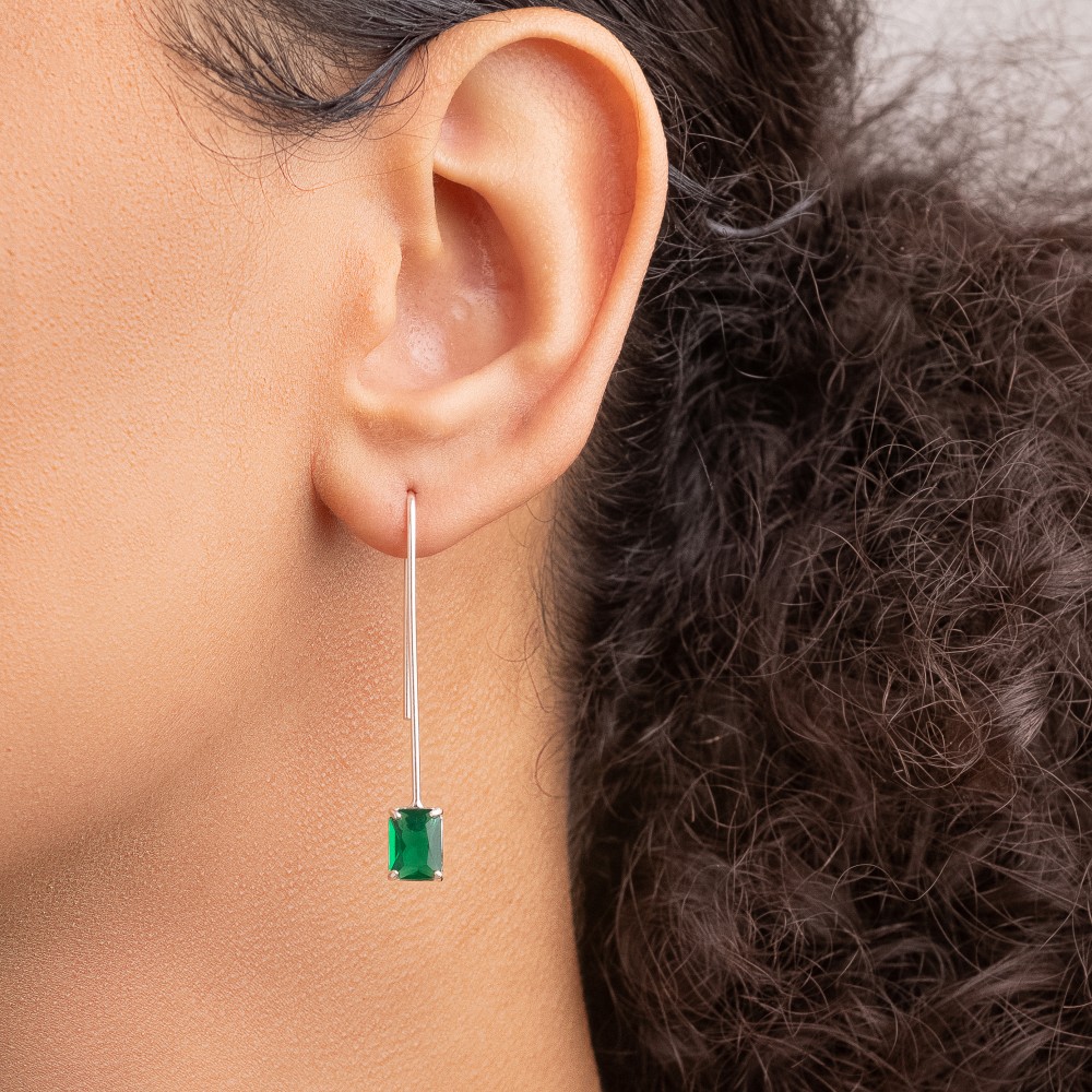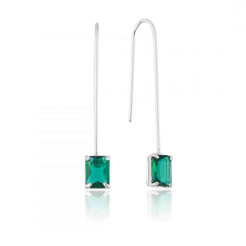 O Brinco de Prata com gancho e zircônia retangular verde é elegante na medida certa. A zircônia verde esmeralda traz cor e personalidade, enquanto o formato retangular deixa o visual mais moderno.