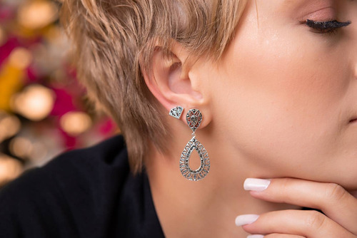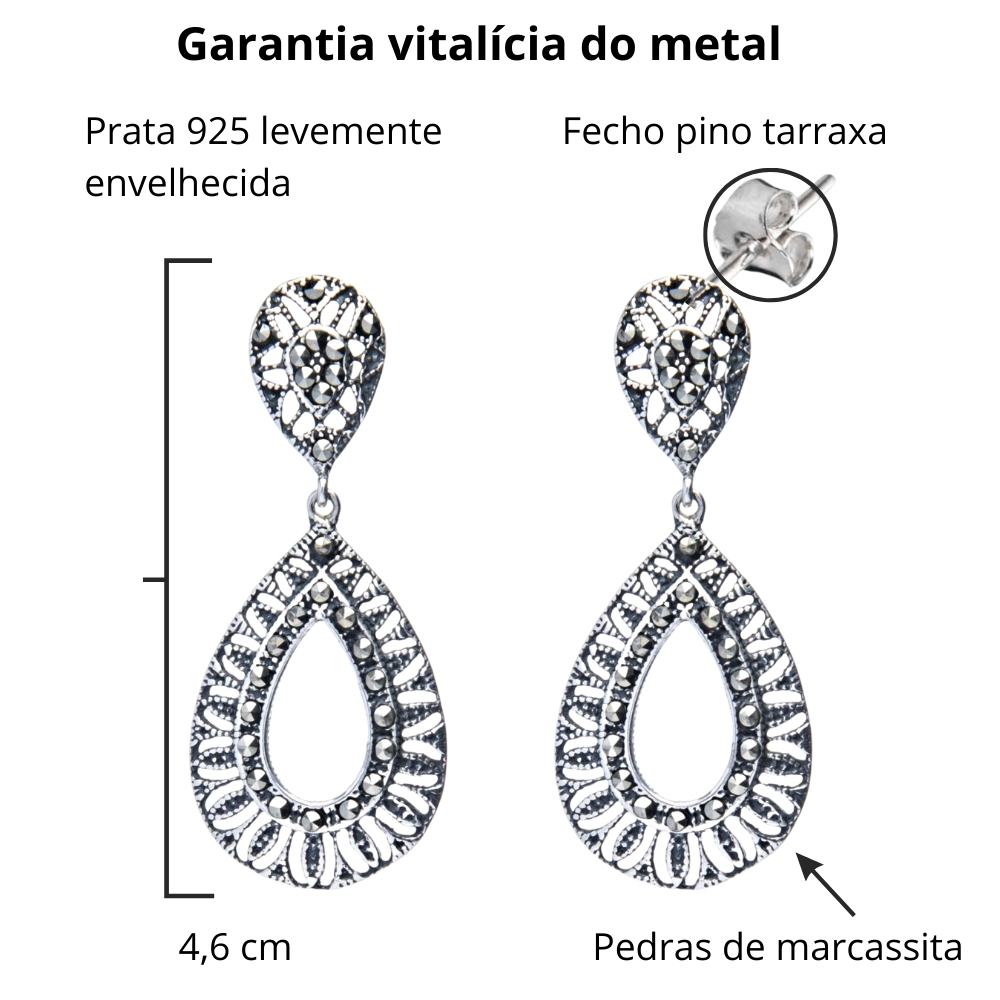 O brinco de prata gota com marcassitas é singular e encantador, e tornará qualquer look inesquecível.