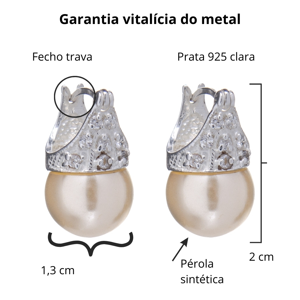 Nossos brincos são produzidos com a Prata 925, que é uma liga composta por 92,5% de prata pura e 7,5% de outros metais, também conhecida como Prata Legítima, essa composição torna a joia mais resistente ao desgaste do dia a dia.