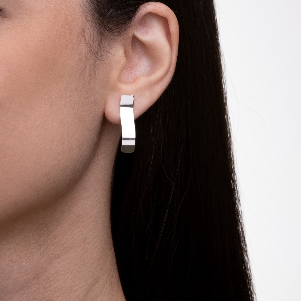 O Brinco de Prata Onda Curta é uma peça moderna e estilosa. Feito em prata lisa, este brinco apresenta um formato ondulado e curto, com 2,6 cm de altura.