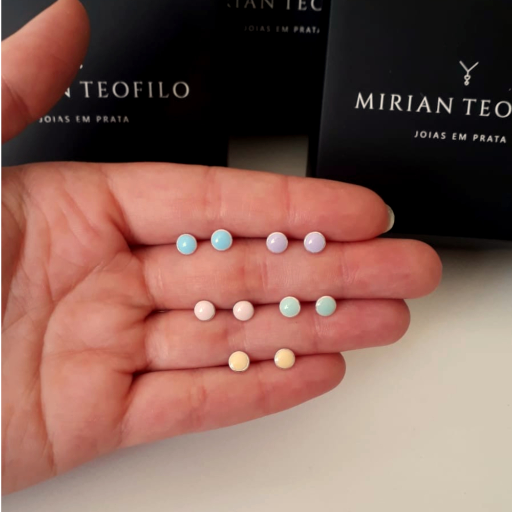 Temos outros brincos com aplicação de resina em tons pastéis, portanto crie combinações incríveis com o brinco pequeno redondo amarelo.