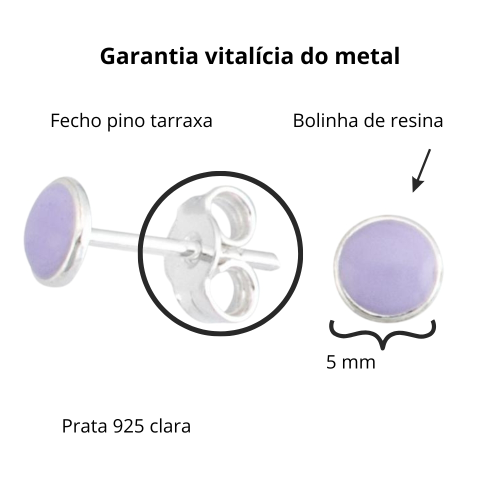 Temos outros brincos com aplicação de resina em tons pastéis, portanto crie combinações incríveis com o brinco pequeno redondo lilás.