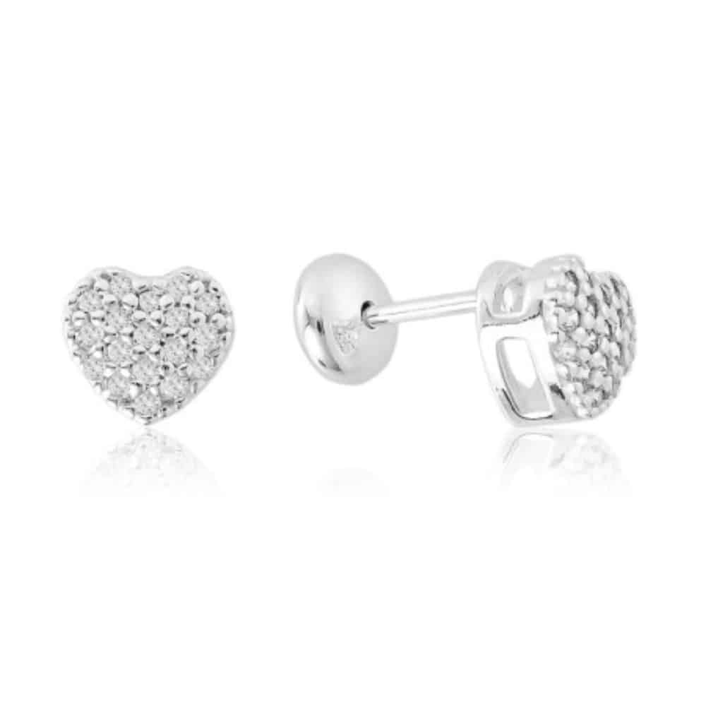Brinco de prata 925 tarraxa baby coração cravejado