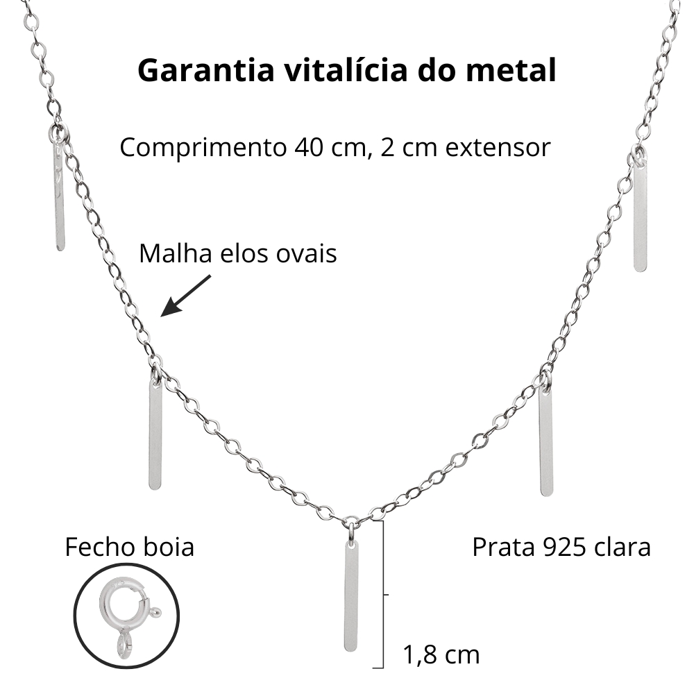 Choker De Prata 925 Com Pingentes Palito Liso 40 cm