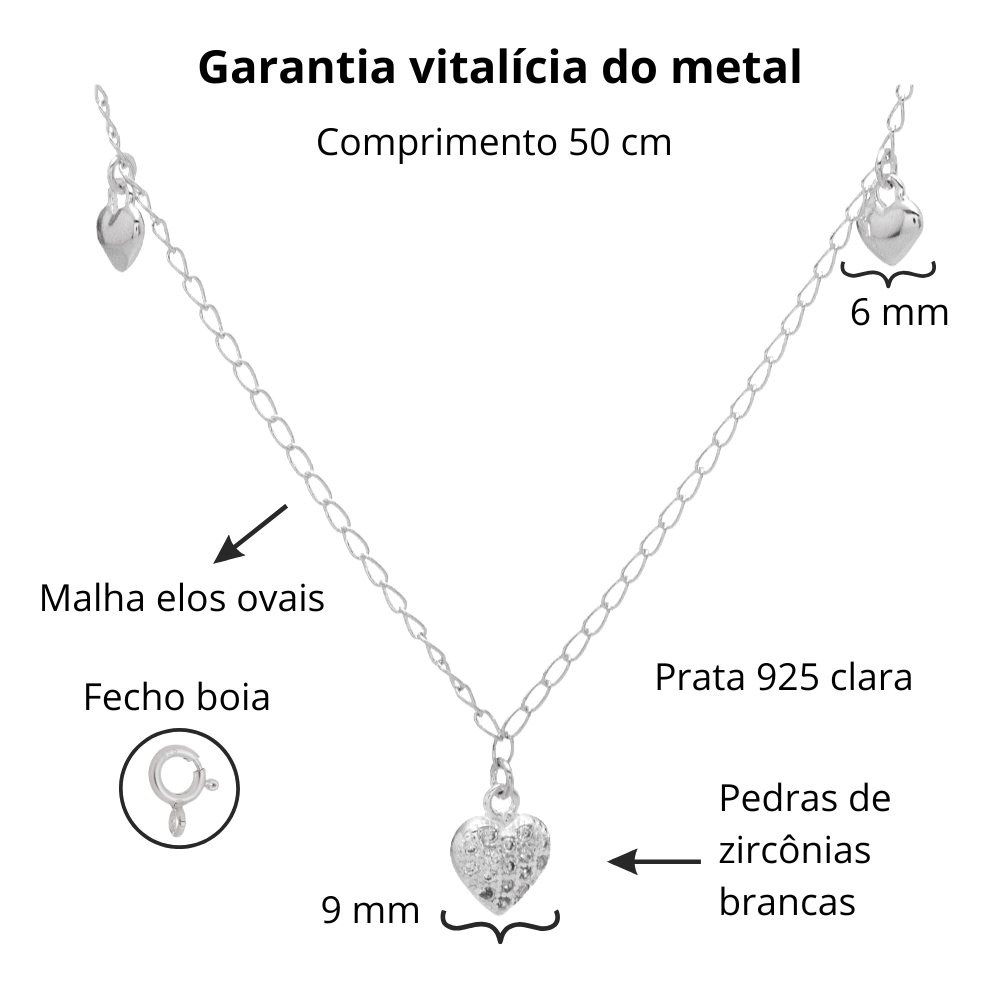 Seja para uso diário ou ocasiões especiais, o Colar de Prata Corações é uma escolha versátil que complementa qualquer look.
