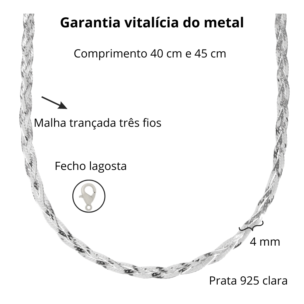 Confeccionada em prata clara, com corrente 3 fios trançadas essa choker tornará qualquer composição deslumbrante!