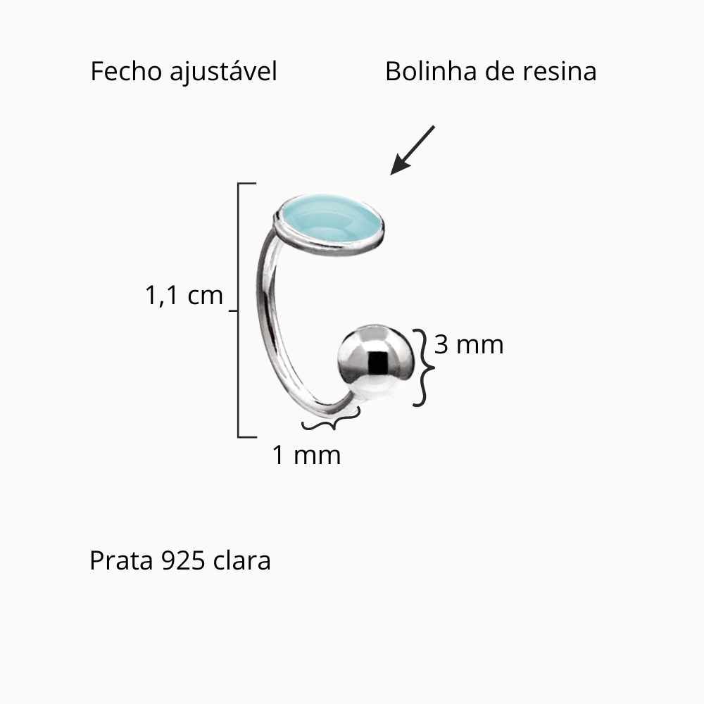 Além da aplicação de resina verde, o piercing de pressão bolinha verde tem uma bolinha em prata lisa.