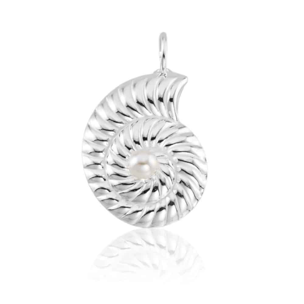 O Pingente de Prata Concha Caracol com Pérola chama atenção pelos detalhes bem definidos e pelo acabamento trabalhado na prata. O formato espiralado da concha ganha ainda mais destaque com a aplicação de uma pérola central, que traz equilíbrio e um visual mais sofisticado.