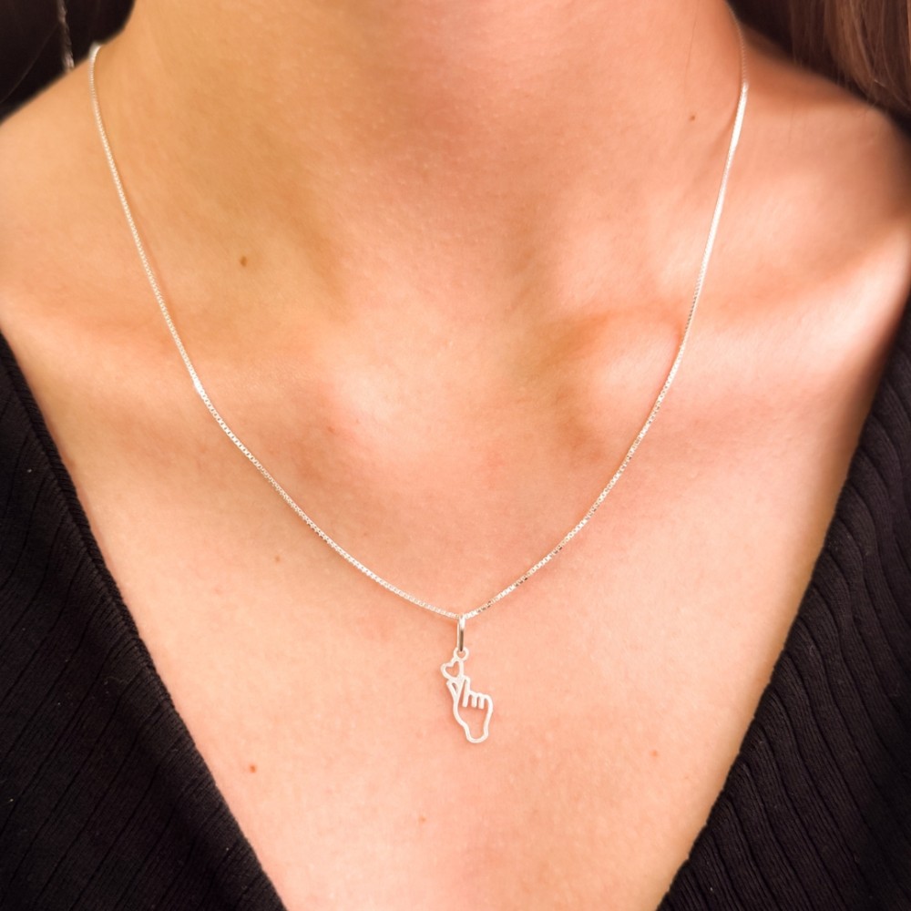 Fabricado em prata 925, o pingente possui acabamento delicado e tamanho mini, ideal para composições modernas e minimalistas. Pode ser usado sozinho ou combinado com outros pingentes, criando um colar cheio de personalidade e com uma mensagem leve e atual.