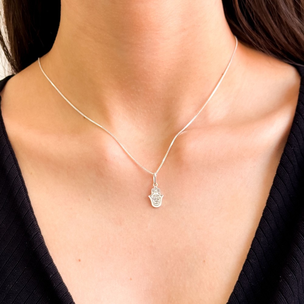 Beleza e a proteção se unem no Pingente de Prata Mini Mão de Fátima. Este encantador pingente em forma de mão hamsa, ou Mão de Fátima é feito de prata clara, oferecendo não apenas elegância, mas também simbolizando sorte e proteção contra energias negativas.