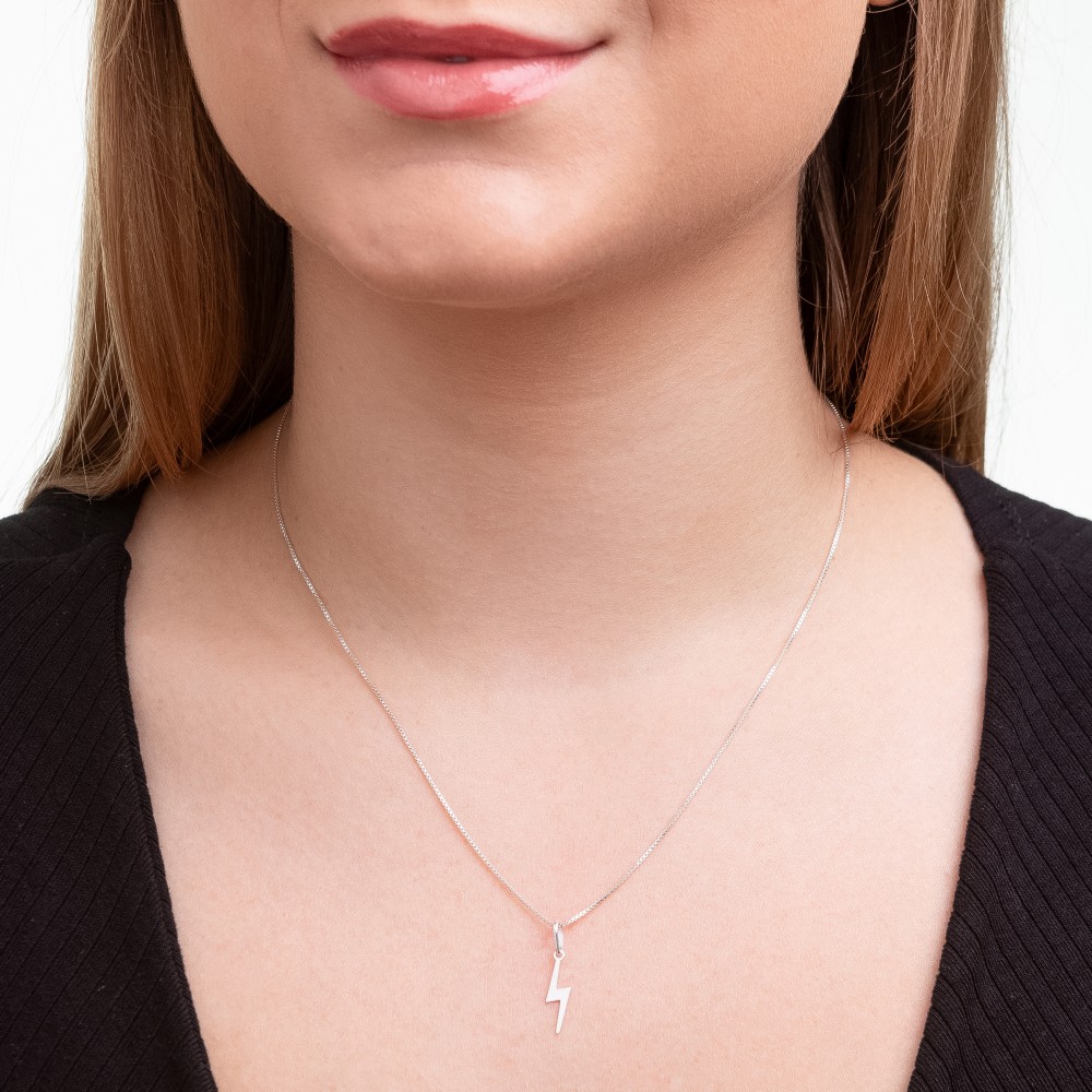 Confeccionado em prata lisa, este pingente assume a forma da raio e oferece uma excelente alternativa para presentear e para o uso diário.