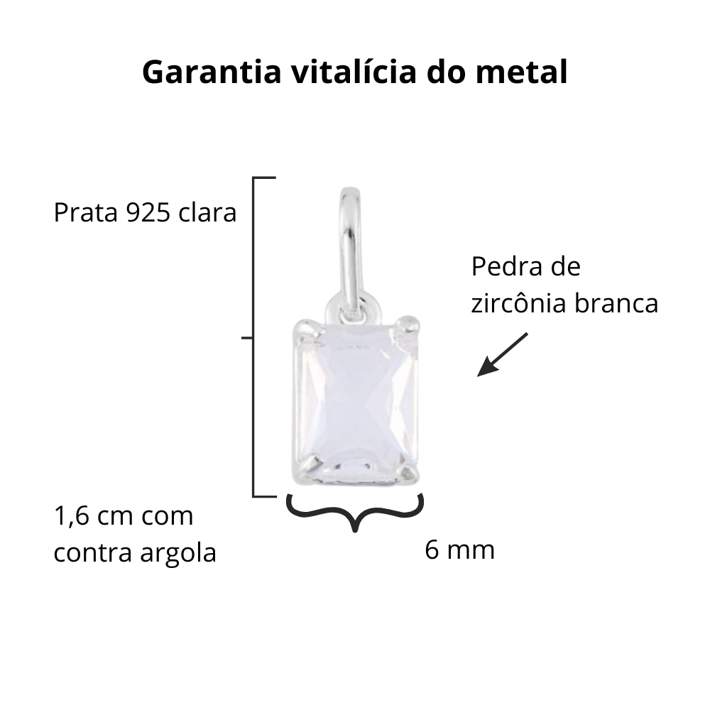 O Pingente de Prata Zircônia Cristal Quadrada, é confeccionado em prata com uma zircônia quadrada cristal. Surpreendentemente atrativo e encantador.